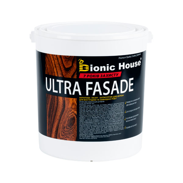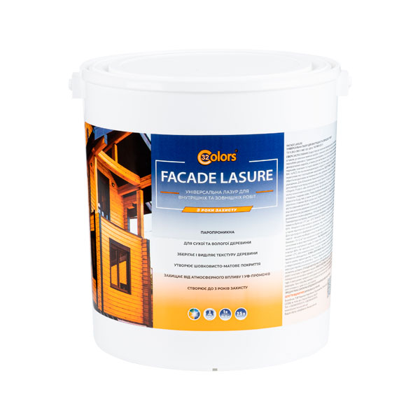 Фінішне просочення-лазур з інноваційною комбінацією діючих речовин на натуральній лляній олії. Використовується для зовнішніх робіт. Фасадна лазур служить надійним покриттям для дерев'яних фасадів, дерев'яних садових меблів, альтанок, веранд і дерев'яних панелей та оздоблення екстер'єру.