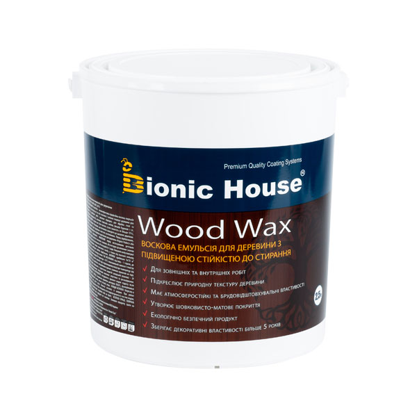 Воскова емульсія для дерева на акриловій основі, стійка до стирання. Є високоефективним декоративним, погодостійким і грязевідштовхувальним засобом для деревини. Має підвищену витривалість, модифікований поліуретановою смолою з додаванням воскової емульсії. Використовується для внутрішніх та зовнішніх робіт.